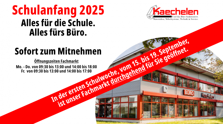 In der ersten Schulwoche vom 15. bis 19. September ist unser Fachmarkt durchgehend für Sie geöffnet.